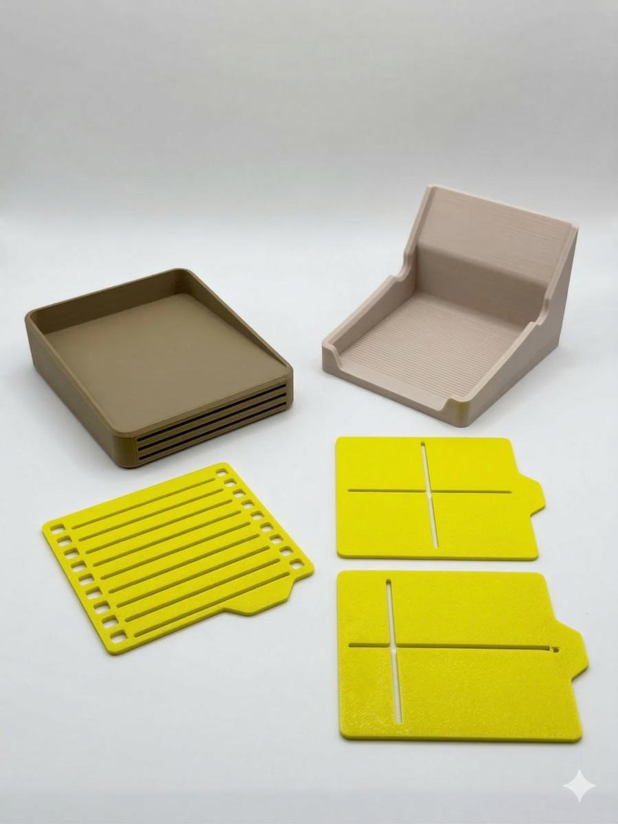 Suporte para post-it com base modular que permite criar listas, tabelas ou anotações rápidas usando as placas de guia.